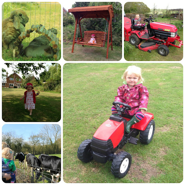 There is no denying though that C is happiest when outside. Before she was born we moved to the countryside to give our future children what we considered to be a better life. In our eyes this was the ideal place to bring up children, surrounded by fresh air, open space and farm animals. Luckily, C seems to agree. We have chickens, guinea pigs, cats and a rabbit, and there are cows at the bottom of the garden. She adores them all! She loves the space in the garden and particularly likes helping Daddy mow the lawn and water the vegetables.